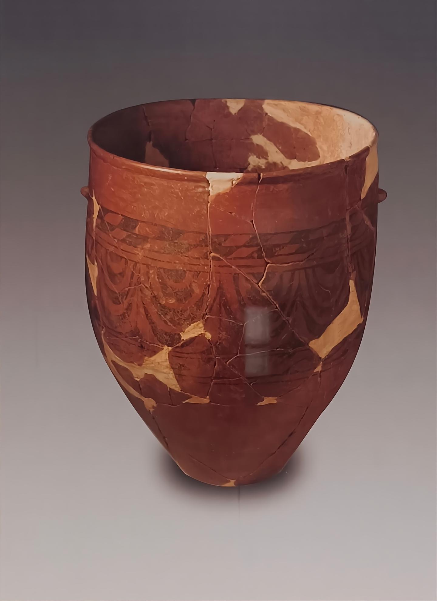 曾在赤峰博物館展出的紅山文化出土陶器中,還有一件融合了三種文化元素的陶罐,這就是20世紀70年代在赤峰市阿魯科爾沁旗紅山文化遺址中發(fā)掘出土的大型細泥紅陶彩繪平底筒形罐。它如同一部無聲的史詩,告訴世人在五千多年前的紅山,曾經(jīng)上演過怎樣的文明交融。