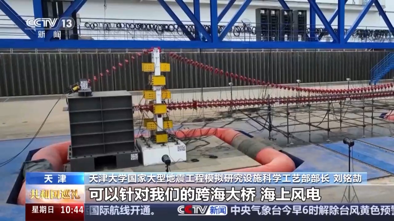 天津大學(xué)國家大型地震工程模擬研究設(shè)施科學(xué)工藝部部長 劉銘劼:我們這里面是世界上唯一的一套,可以實現(xiàn)水下雙臺地震、波浪、水流聯(lián)合模擬的一個試驗裝置,可以在3米水深下工作,可以針對我們的跨海大橋、海上風(fēng)電這些海上“超級工程”進行更加真實的地震模擬研究。