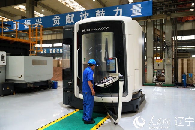 技術人員在沈鼓生產車間里調整設備參數(shù)。人民網(wǎng)記者 邱宇哲攝