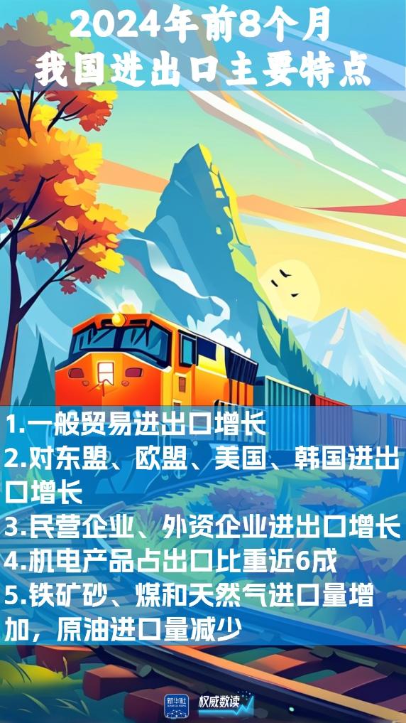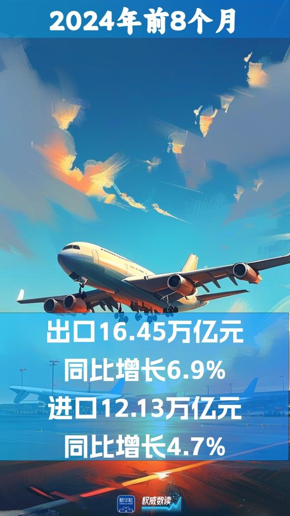 海關(guān)總署10日發(fā)布數(shù)據(jù):2024年前8個(gè)月,我國(guó)貨物貿(mào)易進(jìn)出口總值28.58萬億元人民幣,同比增長(zhǎng)6%。其中,出口16.45萬億元,同比增長(zhǎng)6.9%;進(jìn)口12.13萬億元,同比增長(zhǎng)4.7%。