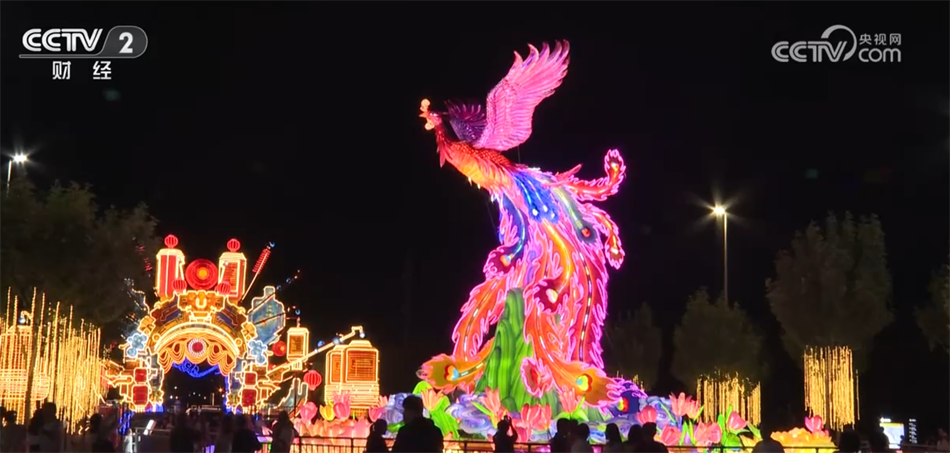 現(xiàn)場展出的彩燈有著“高、大、新、奇、特”等特點,其中,大型燈組迎賓門長約80米,單個燈籠最大直徑就達15米;還有采用“彩色吹塑紙+透明亞克力”材質(zhì)的“鳳舞九天”燈組,這只“鳳凰”全身共有4萬片羽毛,每一片羽毛都由工匠手工剪制而成,燈組總剪制量就高達800萬剪。