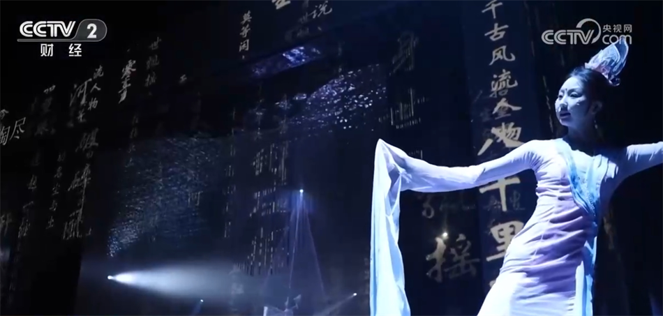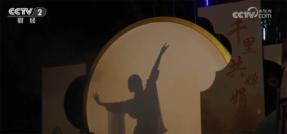 夜幕降臨,全新的《千里共嬋娟》月影舞將月色之美與文化氣息融為一體,劇目特別制作了新的月亮造型背景,“穿越”而來的蘇軾吟詩,舞者在幕布后表演舞蹈,通過光影將古詩詞中的意境呈現(xiàn)在大家眼前,為游客帶來耳目一新的視聽感受。