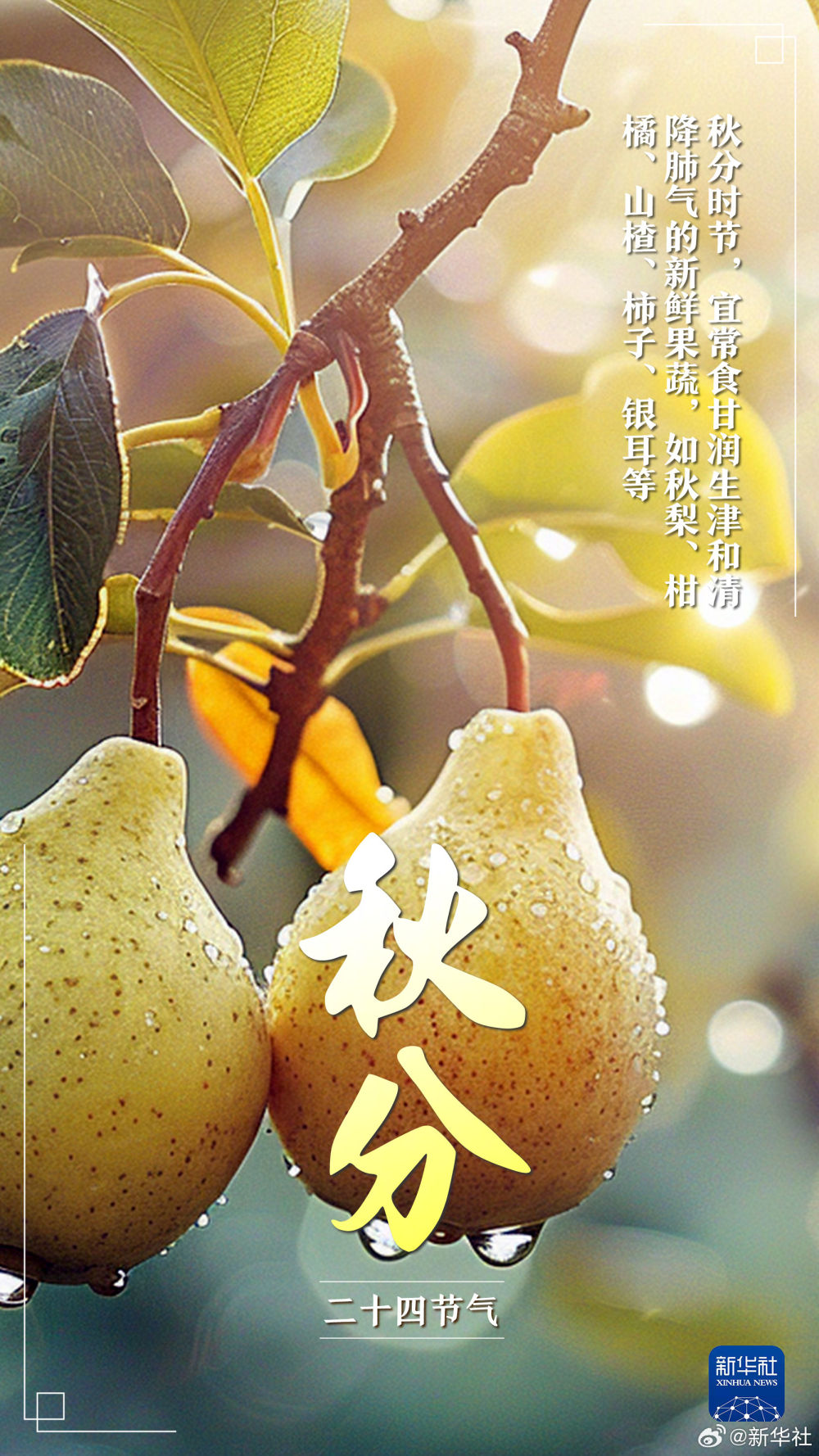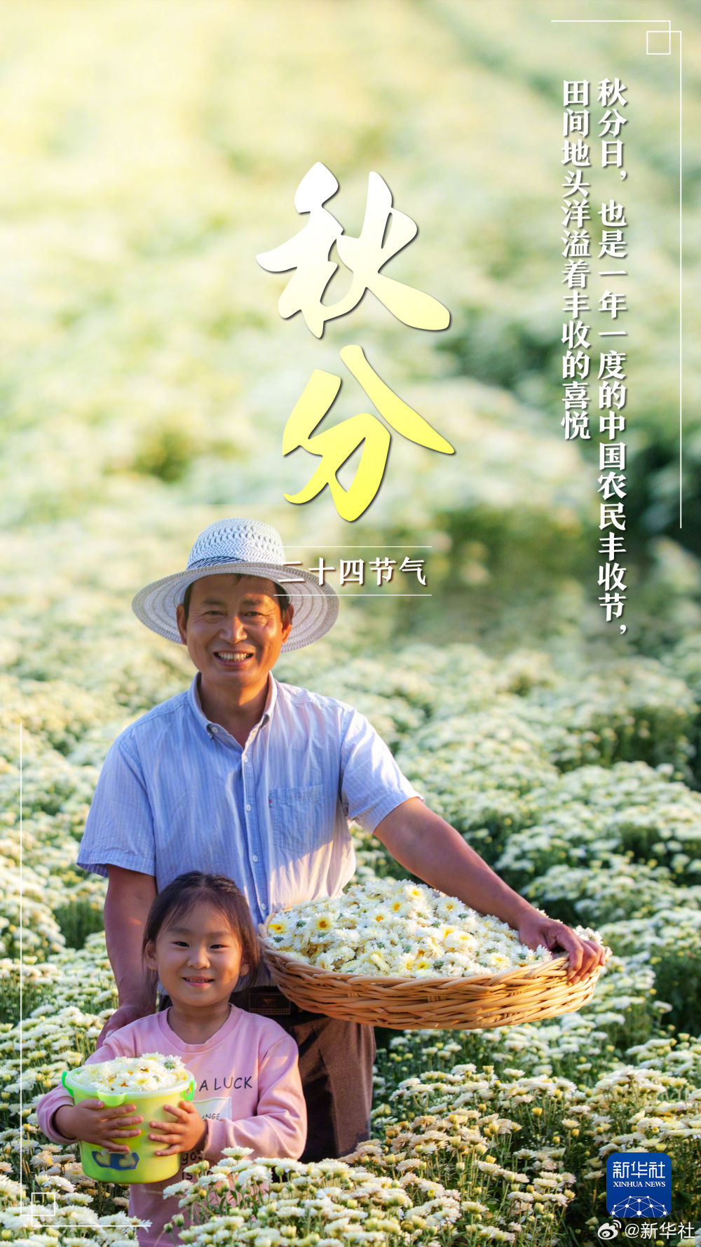 【今日秋分,共慶豐收】①北京時(shí)間9月22日20時(shí)43分迎秋分;②秋分陽光幾乎直射赤道,晝夜等長(zhǎng);③秋分后晝夜溫差加大,記得及時(shí)添衣加被;④秋分也是農(nóng)民豐收節(jié)。讓我們?cè)诠瞎h香、碩果累累的喜悅中,一起迎接收獲的金秋!