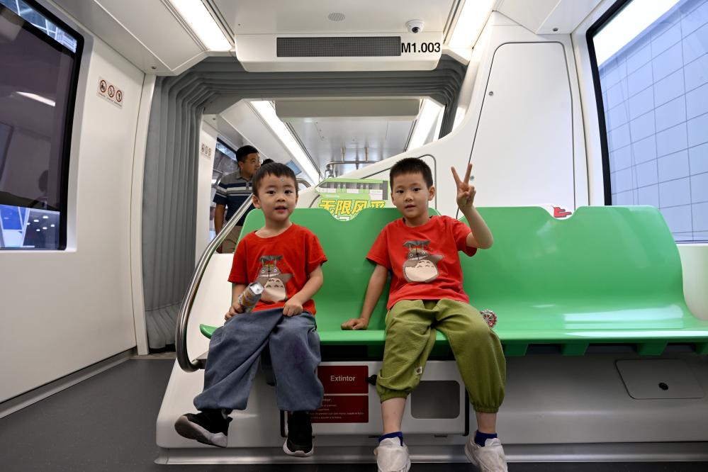 9月21日,在2024世界制造業(yè)大會(huì)上,小朋友體驗(yàn)一款跨座式單軌列車(chē)。新華社記者 黃博涵 攝