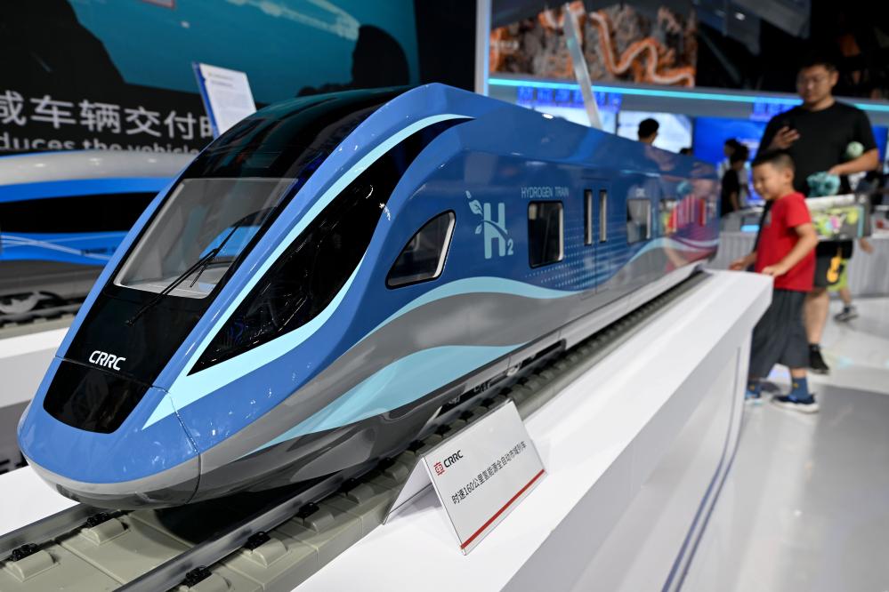 9月21日,在2024世界制造業(yè)大會(huì)上,人們參觀氫能源全自動(dòng)市域列車(chē)模型。新華社記者 黃博涵 攝