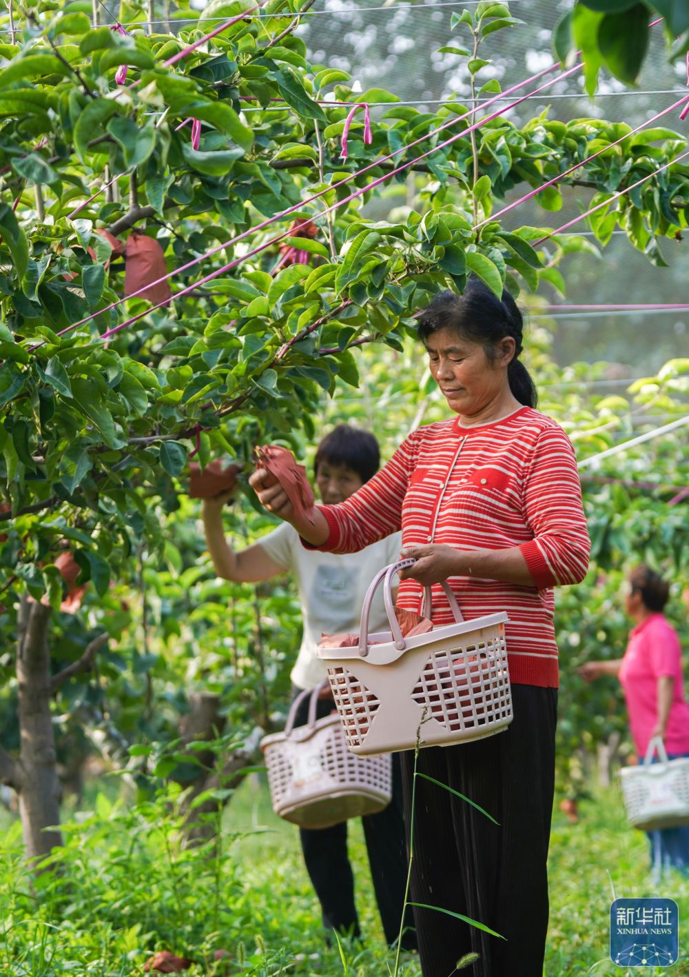9月19日,在山東省鄒平市臺子鎮(zhèn)惠明農(nóng)場,果農(nóng)在采摘新華梨。
