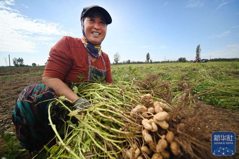 9月21日,在河南省開封市祥符區(qū)范村鄉(xiāng)葛寨村,農(nóng)民在收獲晚茬花生。