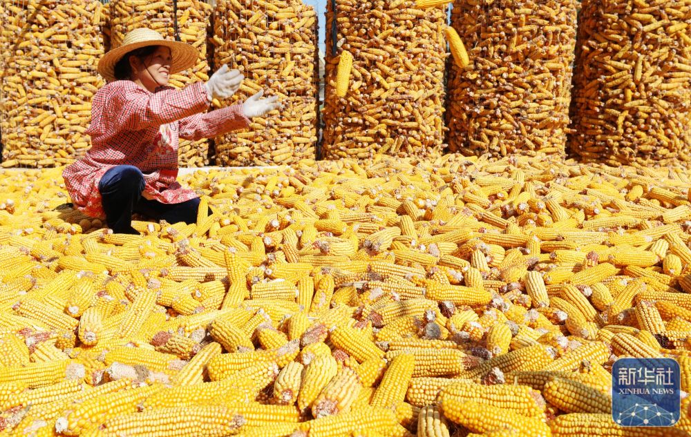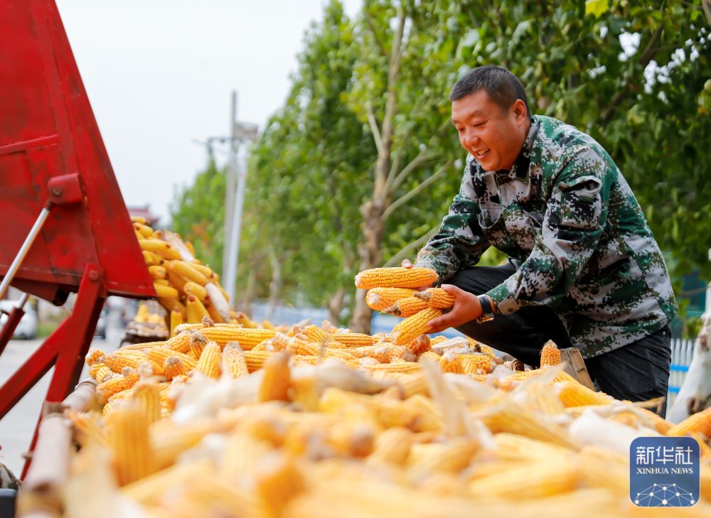 9月21日,在河南省焦作市武陟縣大封鎮(zhèn)大封村,農(nóng)民將收獲的玉米集中貯藏。