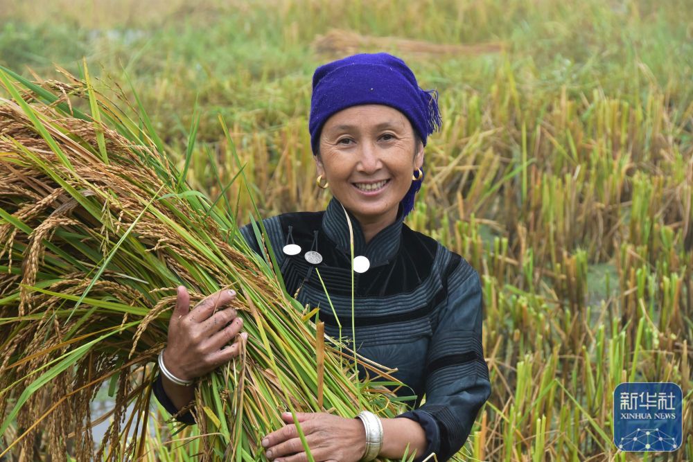 9月22日,在云南省紅河哈尼族彝族自治州元陽縣,農(nóng)戶在收割水稻。