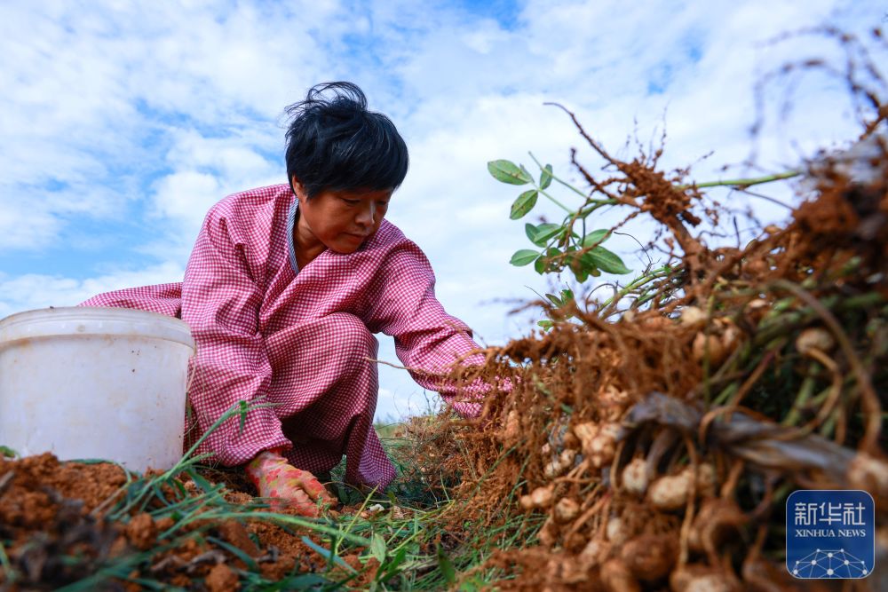 9月21日,在山東省滕州市東郭鎮(zhèn)夏莊村,農(nóng)民在收獲花生。