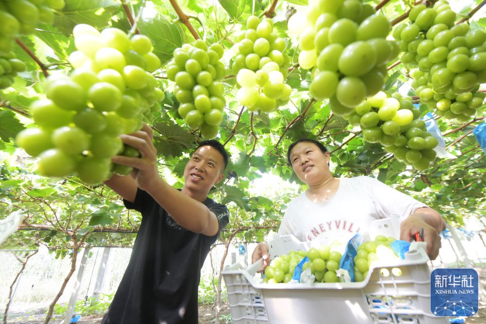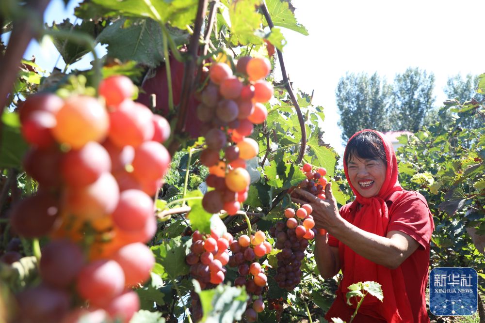 9月22日,在河北省石家莊新樂市協(xié)神鄉(xiāng)賈莊村,農(nóng)民在采摘葡萄。