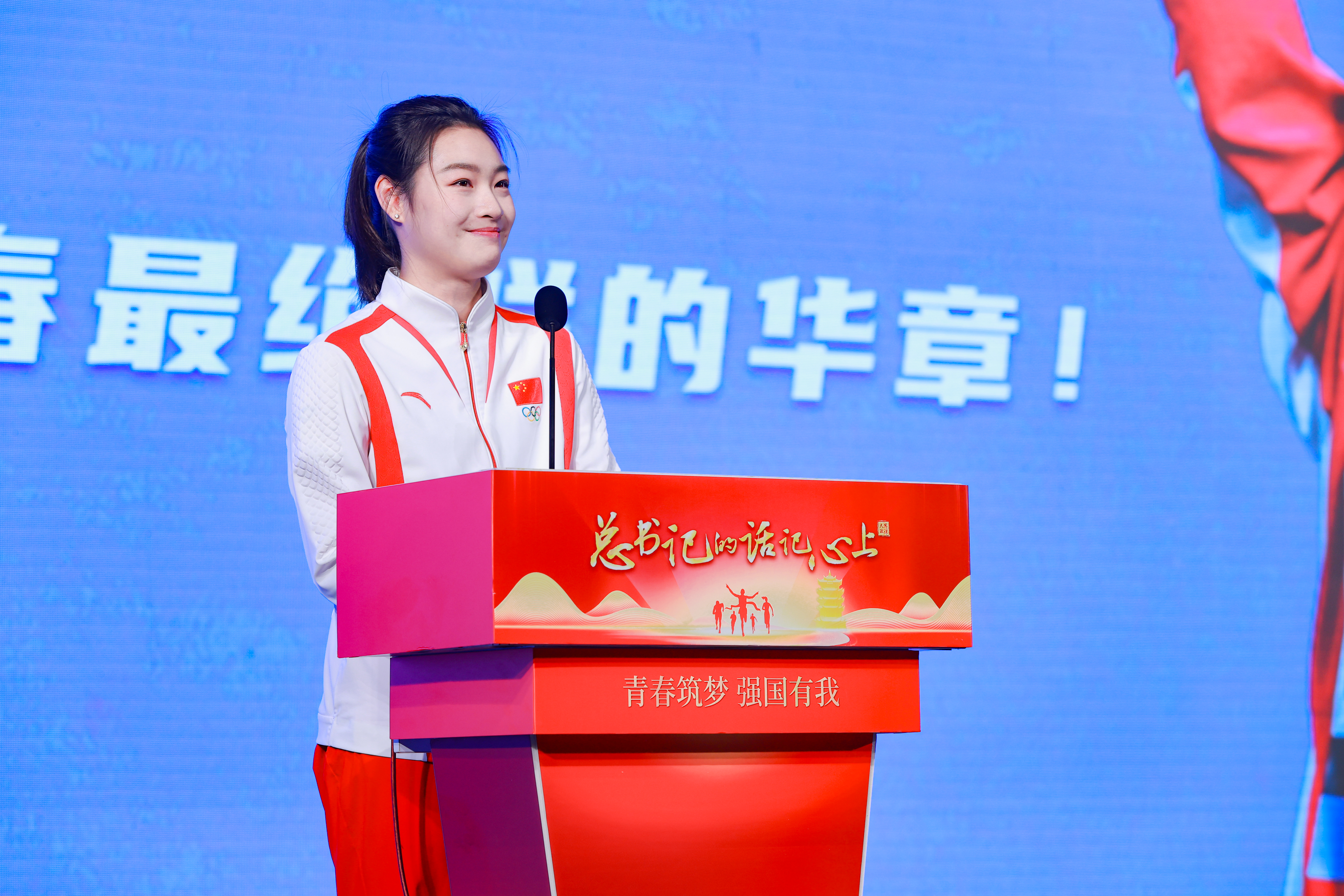奧運冠軍昌雅妮驚喜亮相,一到現(xiàn)場就引起了學(xué)生們的歡呼與喝彩。她和同學(xué)們親密合影,引爆全場!接著,她登臺動情講述奪冠背后的故事:“從跳校到奧運冠軍,我的每一步都凝聚著汗水、淚水與堅持……”回憶起訓(xùn)練的艱辛歷程,她幾度哽咽落淚,讓人心疼。決勝巴黎、綻放奧運的背后,是堅持的力量!昌雅妮以自己的切身經(jīng)歷,激勵青年學(xué)子:“只要有夢想,我們就不懼遠航,堅持的力量,將繪就青春最絢爛的華章!”