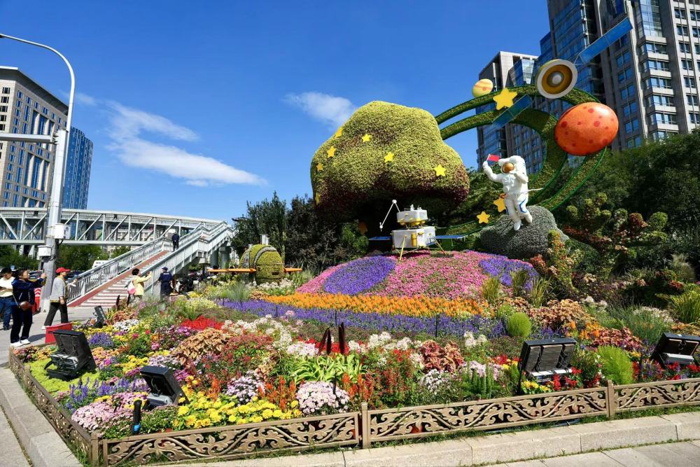 題材廣了。梳理歷年國慶花壇設(shè)計(jì)元素發(fā)現(xiàn),其內(nèi)容表達(dá)不斷豐富。從中國龍、長江和長城、北京奧運(yùn)會(huì)會(huì)徽、祥云和中國結(jié)等意象,到今年的嫦娥六號(hào)、無人送貨車、花園城市、登山騎行的健兒、禾下乘涼的農(nóng)民、劈波斬浪的貨輪等,悉數(shù)講述著科技強(qiáng)國建設(shè)、健康中國建設(shè)、生態(tài)文明建設(shè)、保障糧食安全、推動(dòng)構(gòu)建人類命運(yùn)共同體等各方面的發(fā)展歷程。“我國綜合國力不斷增強(qiáng),這幾年國慶花壇的設(shè)計(jì)靈感一抓一大把。”藍(lán)海浪說。