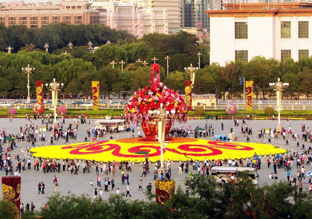 圖為9月25日拍攝的天安門廣場(chǎng)“祝福祖國”巨型花籃。新華社記者 鞠煥宗 攝