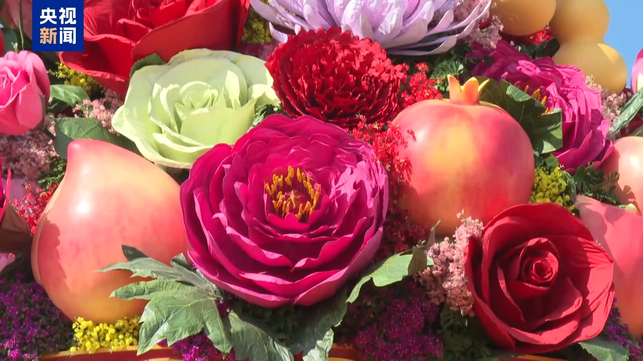 “祝福祖國”大型花壇以喜慶的蔬果花籃為主景,花壇頂高18米,籃體高16米,籃盤直徑12米。花壇底部直徑45米,為如意圖案,寓意吉祥如意、國泰民安。今年的花壇首次以“蔬果花籃”呈現(xiàn),籃內(nèi)選取了美好寓意的蔬果和花卉,體現(xiàn)“蔬果飄香,繁花似錦”。