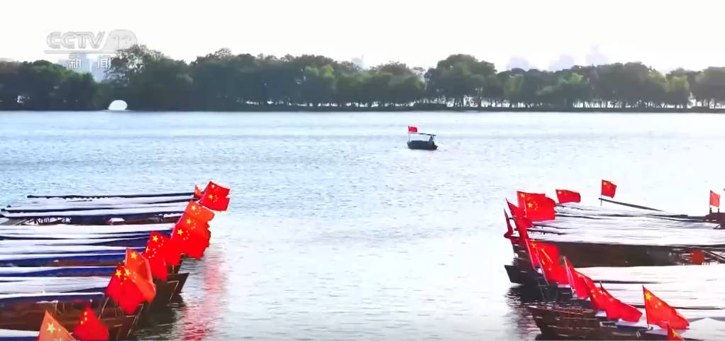 在浙江杭州,西湖上的游船掛起五星紅旗,紅旗與湖水交相輝映,構(gòu)成秋日美麗畫卷;在云南紅河,建水古城裝飾一新,古色古香的建筑在國(guó)旗映襯下別有韻味;在貴州貴陽(yáng),多處城市地標(biāo)布置了國(guó)慶主題景觀花壇;在江西南昌,國(guó)慶立體花卉造型“祝福祖國(guó)繁榮昌盛”亮相八一廣場(chǎng),花卉造型由約5萬(wàn)盆鮮花搭配組成,融入中國(guó)結(jié)、華表、飄帶元素,表達(dá)著人們對(duì)祖國(guó)的深深祝福;在安徽合肥,用花卉、水果打造的大型花籃象征著花團(tuán)錦簇、碩果累累,吸引市民打卡拍照。