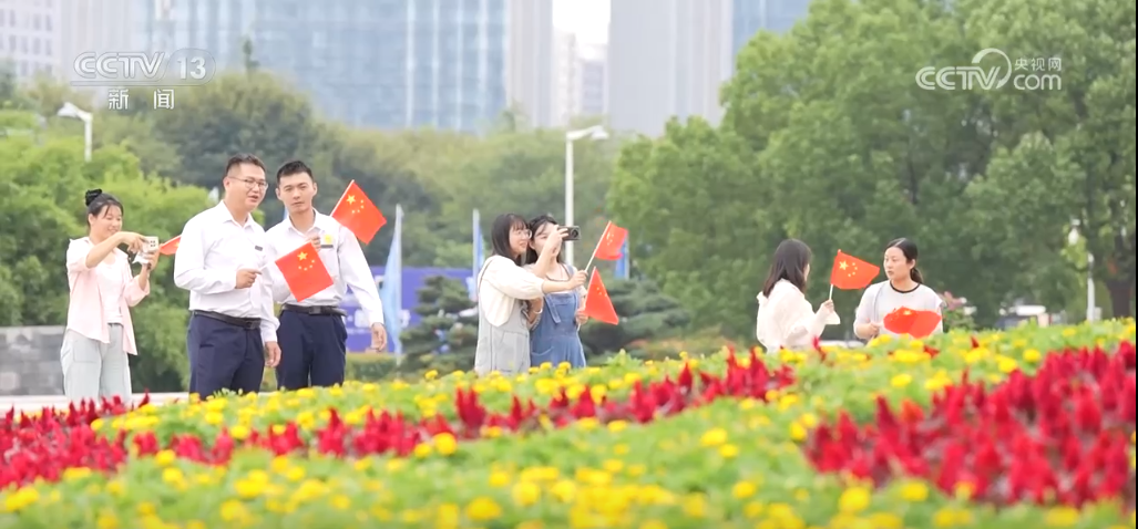 內(nèi)蒙古呼和浩特、鄂爾多斯等地,主干道和重要場(chǎng)所已裝扮一新,一面面鮮艷的五星紅旗飄揚(yáng)在大街小巷。在錫林浩特市,一處鮮紅色的“我和國(guó)旗合個(gè)影”背景板格外引人注目,成為市民們爭(zhēng)相拍照打卡的熱門“景點(diǎn)”。