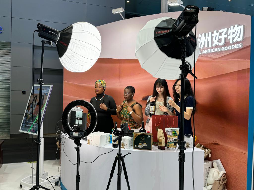 南非的紅酒、埃塞俄比亞的咖啡、肯尼亞的紅茶……在“智慧非洲”展臺(tái)一角,來(lái)自南非和中國(guó)的4名大學(xué)生變身帶貨主播,通過(guò)TikTok和抖音平臺(tái)將各類(lèi)“非洲好物”推廣至海內(nèi)外。