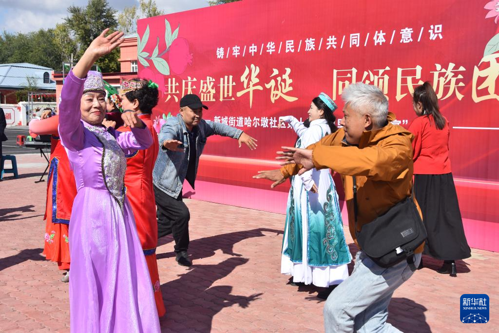 開闊的社區(qū)大院內,數(shù)十名各族群眾圍坐長桌旁,一邊品嘗各色美食,一邊欣賞居民的精彩表演,歡聲笑語不時傳出。這是新疆塔城市新城街道哈爾墩社區(qū)舉行的“鄰里節(jié)百家宴”,各族群眾展示民族歌曲,跳起歡快的舞蹈。