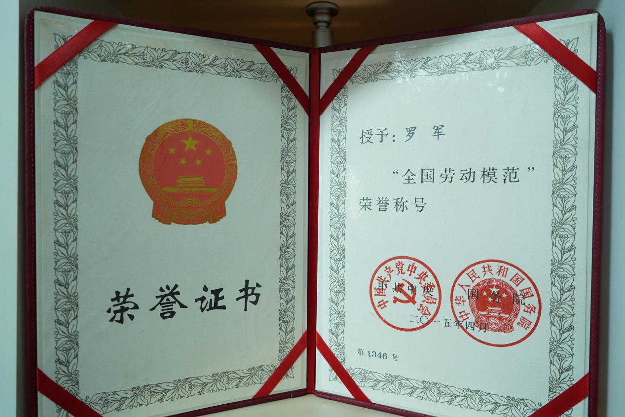 圖為羅軍被授予“全國勞動(dòng)模范”榮譽(yù)稱號(hào)的證書。