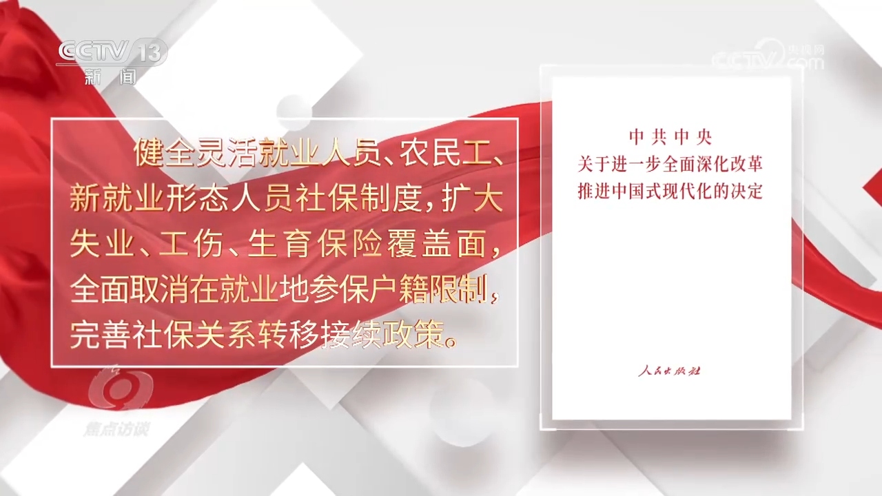 今天節(jié)目繼續(xù)聚焦“開辟中國式現(xiàn)代化廣闊前景”。我們的目標(biāo)很宏偉,也很樸素,歸根結(jié)底就是讓人民過上更好的日子。習(xí)近平總書記說,孩子的撫養(yǎng)教育,年輕人的就業(yè)成才,老年人的就醫(yī)養(yǎng)老,是家事也是國事。的確,中國式現(xiàn)代化民生為大。黨和國家是把這些事放在心上的。黨的十八大以來,我國建成世界上規(guī)模最大的醫(yī)療衛(wèi)生體系,全國各級教育普及程度達(dá)到或超過中高收入國家平均水平,建成世界上規(guī)模最大的社會保障網(wǎng)。面對新形勢新挑戰(zhàn),社會保障也在不斷調(diào)整,發(fā)揮兜底作用。黨的二十屆三中全會圍繞“健全保障和改善民生制度體系”作出一系列重要改革部署,提出健全靈活就業(yè)人員、農(nóng)民工、新就業(yè)形態(tài)人員社保制度。這就要求面對新情況新問題,不斷探索完善符合人民群眾需要的社保體系?,F(xiàn)在,這項(xiàng)工作在全國多個試點(diǎn)已經(jīng)取得了成效。