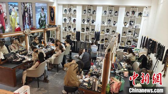 喀什古城景區(qū)旅拍店生意火爆。董曉 攝