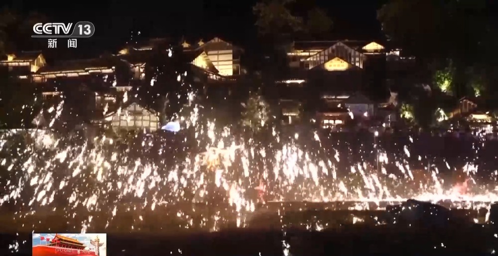 隨著夜幕降臨,非遺打鐵花、篝火狂歡派對(duì)等節(jié)目陸續(xù)開始,讓游客感受東方之美、中國(guó)之韻。10月1日到7日,烏江寨新增民族盛裝巡游、萬人大合唱、無人機(jī)光影秀等內(nèi)容,從早到晚輪番上演,為游客們呈上一場(chǎng)文化大餐。