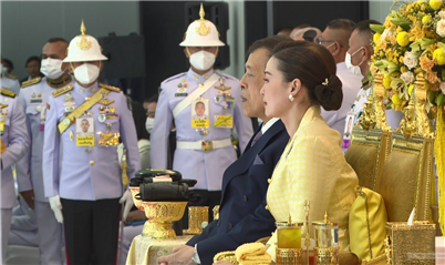本次活動的最大亮點是,泰國國王和王后蒞臨友誼賽,王后素提達(dá)率泰國國家女子冰球隊與首次到訪泰國的中國國家女子冰球隊共同參賽。泰國總理佩通坦、中國駐泰國大使韓志強、泰國旅游與體育部長索拉翁、國際奧委會委員帕塔瑪以及中泰兩國冰球協(xié)會主席等出席活動。