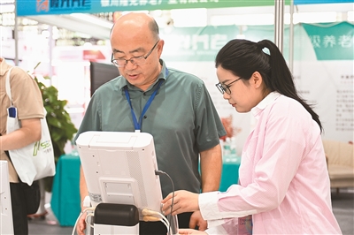 2024寧夏養(yǎng)老服務(wù)業(yè)博覽會(huì)近日在寧夏銀川市舉辦。本屆博覽會(huì)集中展示國(guó)內(nèi)外養(yǎng)老服務(wù)前沿科技和最新成果,推動(dòng)健康養(yǎng)老產(chǎn)業(yè)向更深層次、更寬領(lǐng)域、更全方位發(fā)展。圖為會(huì)上工作人員向參觀(guān)者介紹醫(yī)療產(chǎn)品。新華社記者 毛 竹攝