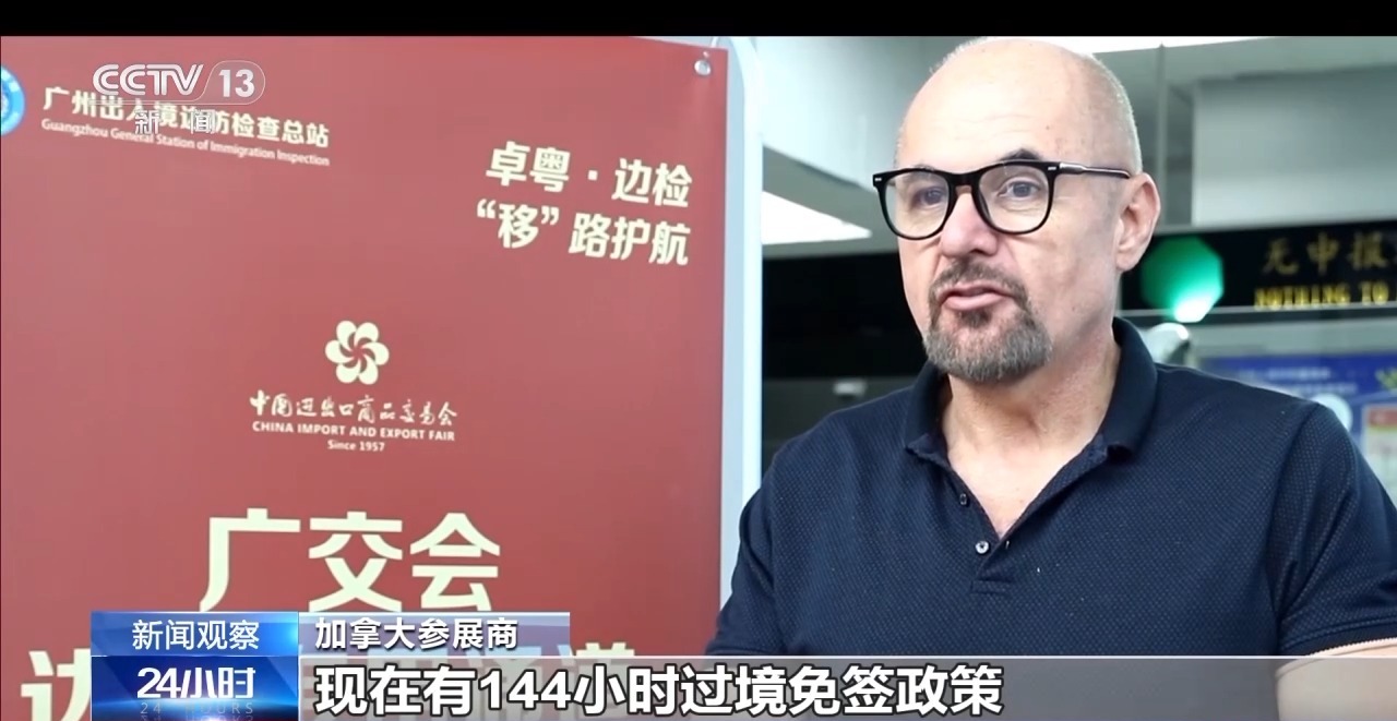 加拿大參展商:剛剛從南沙口岸入境參加廣交會(huì),現(xiàn)在有144小時(shí)過(guò)境免簽政策可以讓我順利入境。