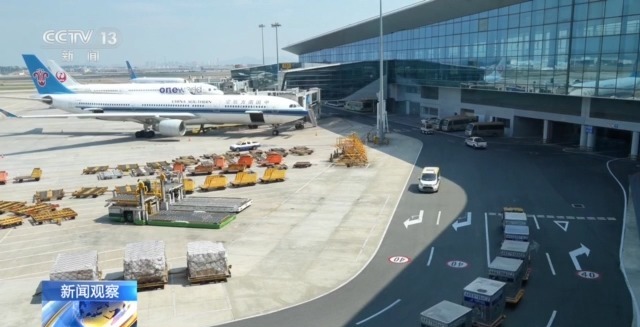 東莞港國(guó)際空運(yùn)有限公司副總經(jīng)理 蕭智亮:我們空港中心是全球首個(gè)直達(dá)機(jī)場(chǎng)空側(cè)的跨關(guān)境??章?lián)運(yùn)項(xiàng)目,貨物在空港中心完成裝車(chē),送達(dá)我們的專(zhuān)用碼頭,通過(guò)海運(yùn)的方式到達(dá)香港國(guó)際機(jī)場(chǎng)飛往全球。