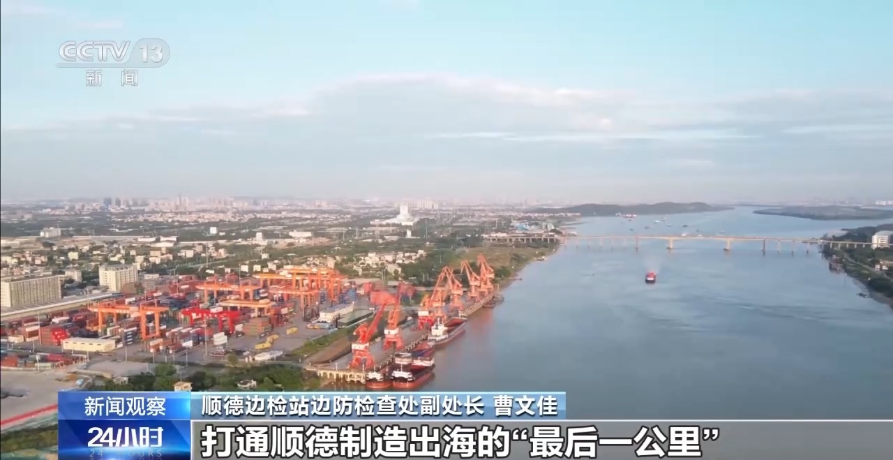 順德邊檢站邊防檢查處副處長(zhǎng) 曹文佳:在順德區(qū)4個(gè)貨運(yùn)碼頭,對(duì)載運(yùn)駐地企業(yè)成交訂單的出入境船舶,實(shí)行船舶邊檢查驗(yàn)“零待時(shí)”,一次辦妥出境手續(xù)就近出海,保障每天3000多個(gè)滿(mǎn)載“順德智造”電器產(chǎn)品的集裝箱,從走進(jìn)碼頭到裝船一路高效暢通,打通順德制造出海的“最后一公里”。