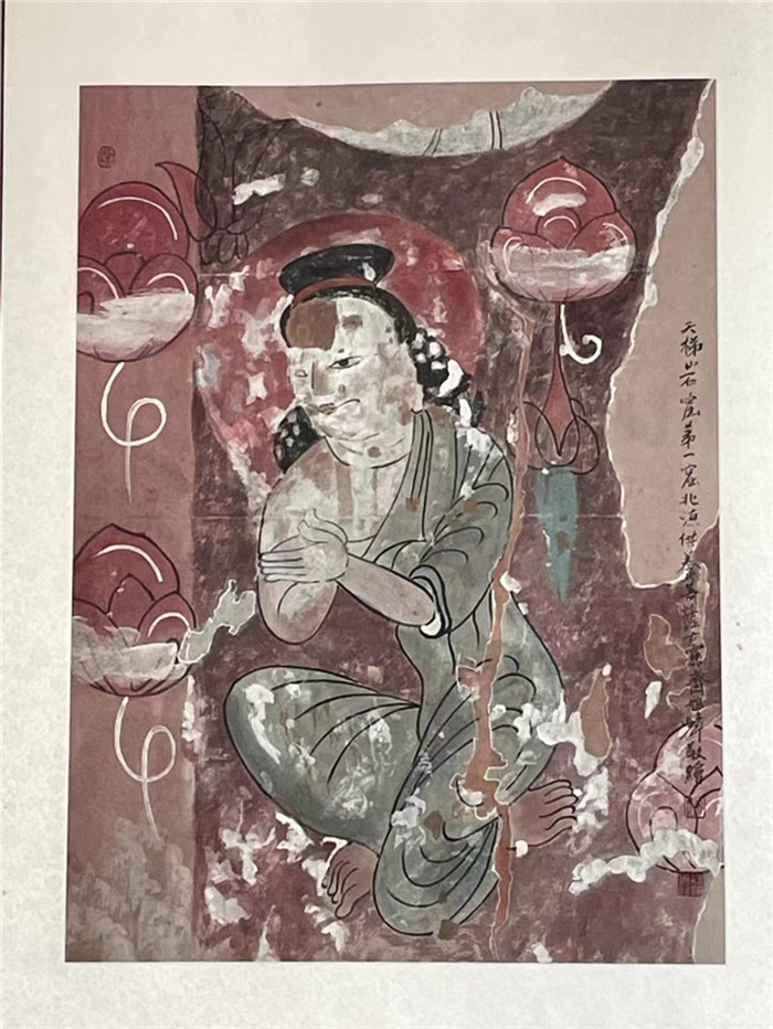 趙旭峰臨摹天梯山石窟壁畫