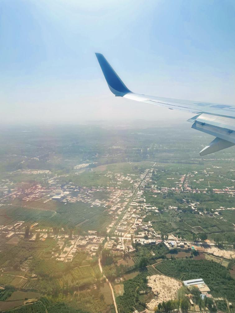 這是10月15日從飛機(jī)上拍攝的喀什。(新華社記者彭茜攝)