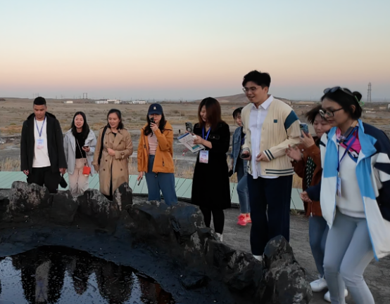 在黑油山最著名的景點(diǎn)——“跳跳泉油池”,黑油山景區(qū)講解員麥爾哈巴·肉扎洪帶領(lǐng)訪問團(tuán)代表們利用壓力傳導(dǎo)作用,在它的周圍邊喊邊跳,眼見著它冒的泡泡越來越多,讓大家興奮不已。麥爾哈巴·肉扎洪說:“經(jīng)過三代人的努力,克拉瑪依變成了現(xiàn)在這樣宜居宜業(yè)宜游的現(xiàn)代化高品質(zhì)城市,希望可以把克拉瑪依艱苦創(chuàng)業(yè)的精神傳達(dá)給大家,也可以把這種活力傳達(dá)給大家?!?/p>