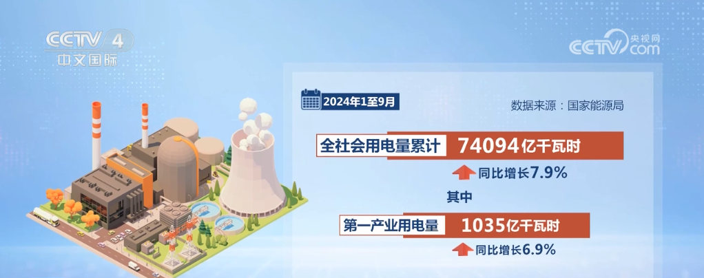 數(shù)據(jù)顯示,今年1至9月,全社會(huì)用電量累計(jì)74094億千瓦時(shí),同比增長(zhǎng)7.9%。其中,第一產(chǎn)業(yè)用電量1035億千瓦時(shí),同比增長(zhǎng)6.9%;第二產(chǎn)業(yè)用電量47385億千瓦時(shí),同比增長(zhǎng)5.9%;第三產(chǎn)業(yè)用電量13953億千瓦時(shí),同比增長(zhǎng)11.2%;城鄉(xiāng)居民生活用電量11721億千瓦時(shí),同比增長(zhǎng)12.6%。
