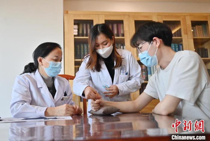 診室里,林玉花拿出針灸針,運用捻轉與提插等手法為患者針灸治病。經過老師悉心指導,這位“95后”泰國女孩已經熟練掌握針灸、拔罐等中醫(yī)治療手段。
