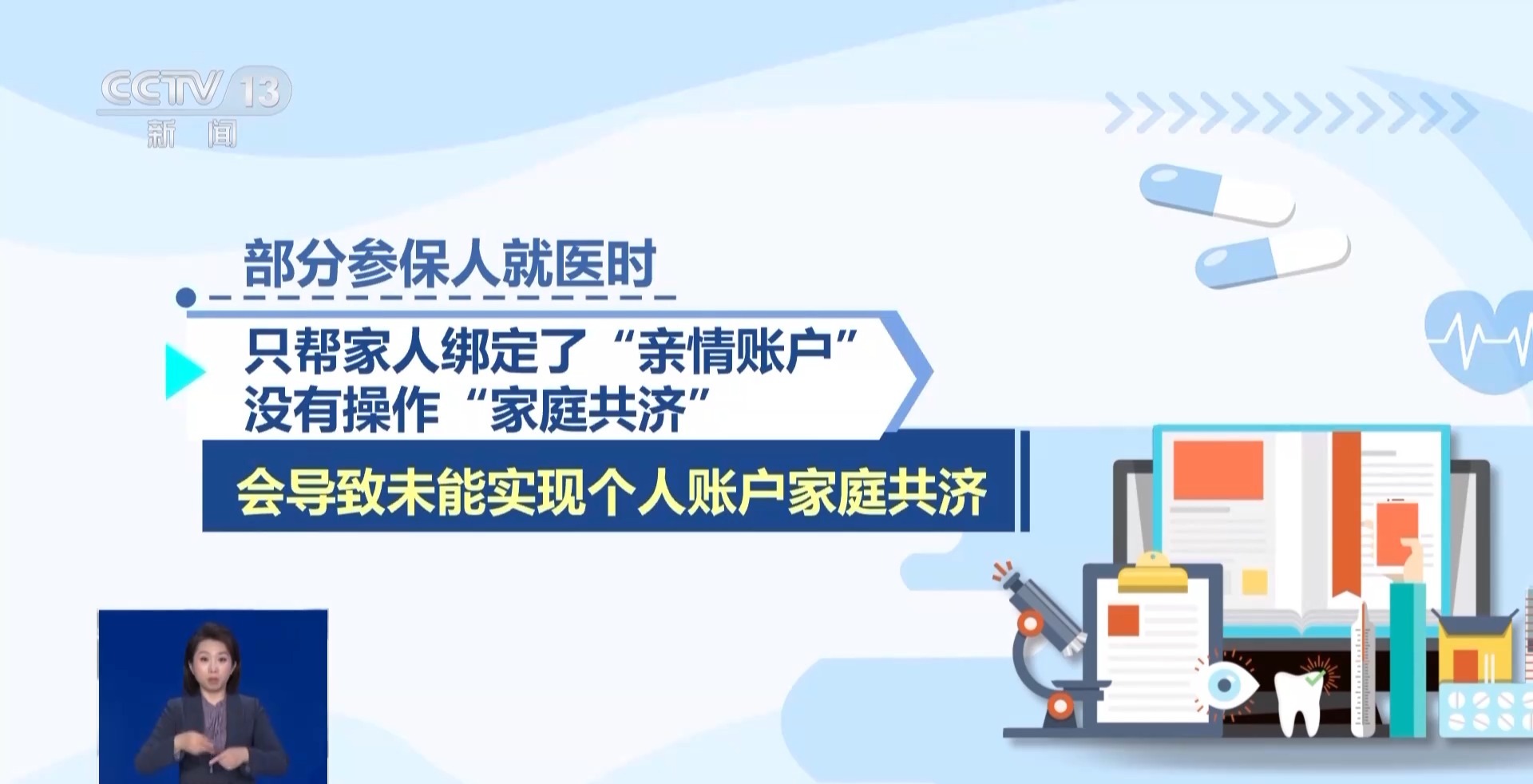 部分參保人就醫(yī)時,只幫家人綁定了“親情賬戶”,沒有操作“家庭共濟”,會導(dǎo)致未能實現(xiàn)個人賬戶家庭共濟。