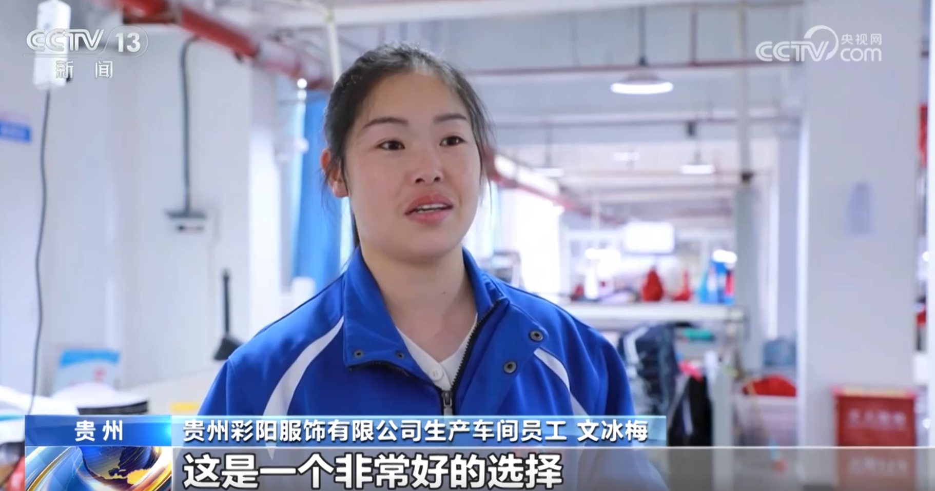 貴州彩陽服飾有限公司生產(chǎn)車間員工文冰梅稱:“平均工資四五千元,十幾年都在外面打工,回到家還有一份穩(wěn)定的收入,對于我們長期在外面打工的人來說,這是一個非常好的選擇?!?/p>