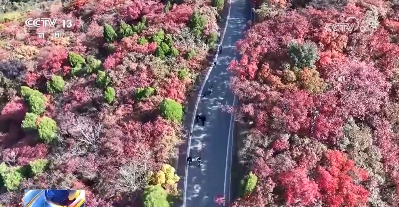 央視網(wǎng)消息:山明水凈夜來(lái)霜,數(shù)樹(shù)深紅出淺黃。這段時(shí)間,山東淄博市的一些景區(qū)和村莊迎來(lái)紅葉最佳觀賞期,市民、游客漫步紅葉林,感受秋天的美好意境。