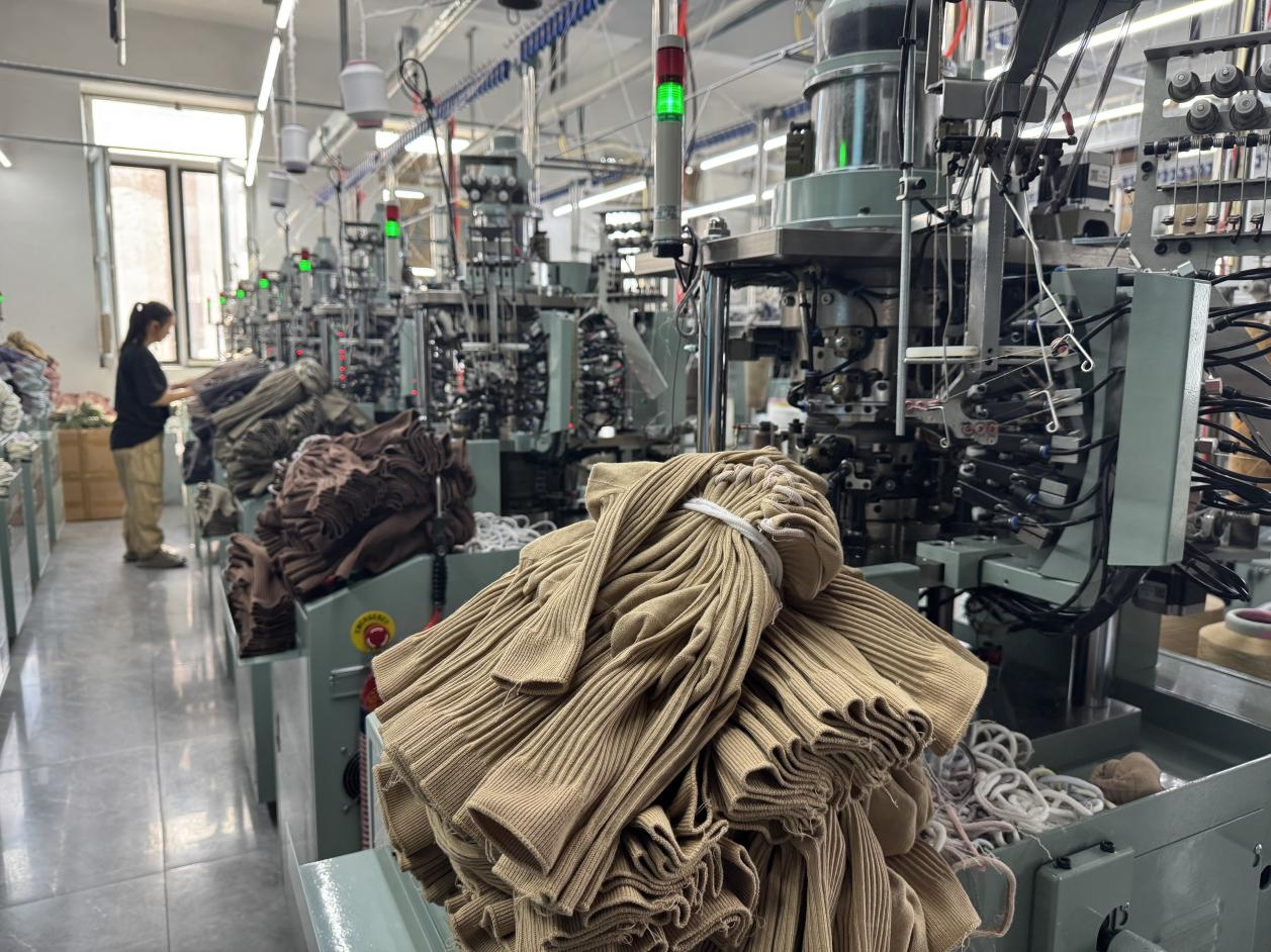 快速成長的小北河襪業(yè)曾以庭院經(jīng)濟(jì)、作坊生產(chǎn)的業(yè)態(tài)為主。從企業(yè)自由生長到集聚發(fā)展,從小作坊到現(xiàn)代化工廠,從內(nèi)貿(mào)為主向內(nèi)外貿(mào)結(jié)合轉(zhuǎn)型,目前,小北河鎮(zhèn)已發(fā)展成為擁有襪業(yè)相關(guān)企業(yè)295家、電腦織機(jī)2.3萬臺、年產(chǎn)襪子25億雙、年產(chǎn)值35億元的全國第二大棉襪生產(chǎn)基地。