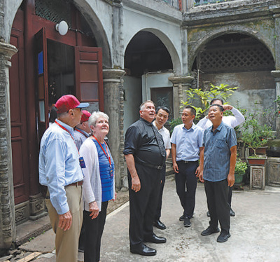 飛虎隊代表團成員參觀飛虎隊在福建長汀的駐扎地黃氏麗園。