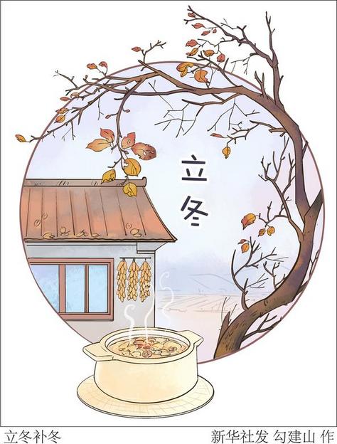 立冬時(shí)節(jié),各地有豐富多彩的傳統(tǒng)習(xí)俗。比如,民間有祭祖、飲宴、卜歲等習(xí)俗,以時(shí)令佳品向祖靈祭祀,祈求來(lái)年是豐年;還有“補(bǔ)冬”,北方有“立冬補(bǔ)冬,補(bǔ)嘴空”的諺語(yǔ),人們習(xí)慣在立冬這天吃餃子,因?yàn)轱溩油庑嗡贫洌藗冋J(rèn)為吃了它,冬天耳朵就不受凍。此外,還有釀黃酒、吃生蔥等。