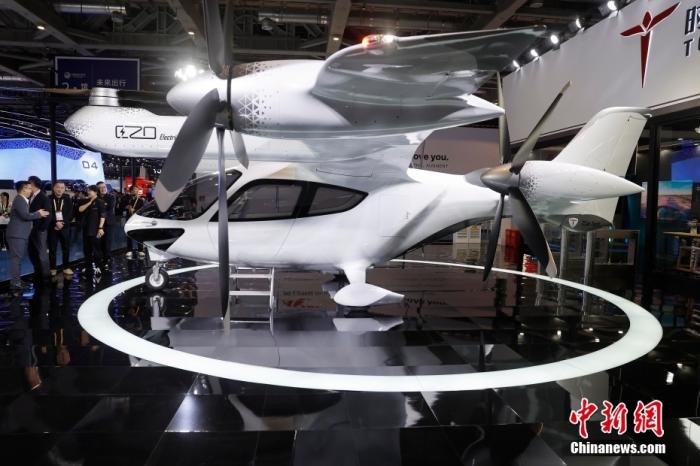 11月5日,在第七屆進博會汽車展區(qū),上海時的科技公司展示E20傾轉(zhuǎn)旋翼載人電動垂直起降飛行器。第七屆中國國際進口博覽會于11月5日至10日在上海舉行。中新社記者 殷立勤 攝
