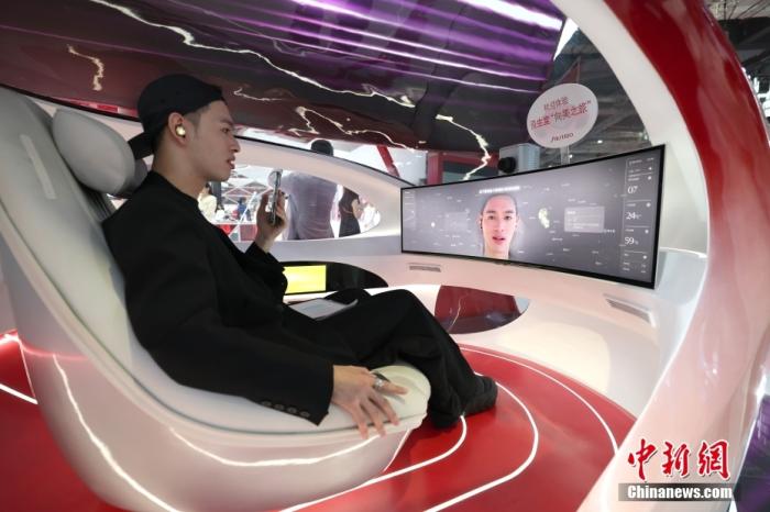 11月6日,參觀者在消費品展區(qū)資生堂展位“美時美刻”體驗艙檢測膚質(zhì)。第七屆中國國際進口博覽會于11月5日至10日在上海舉行。中新社記者 富田 攝