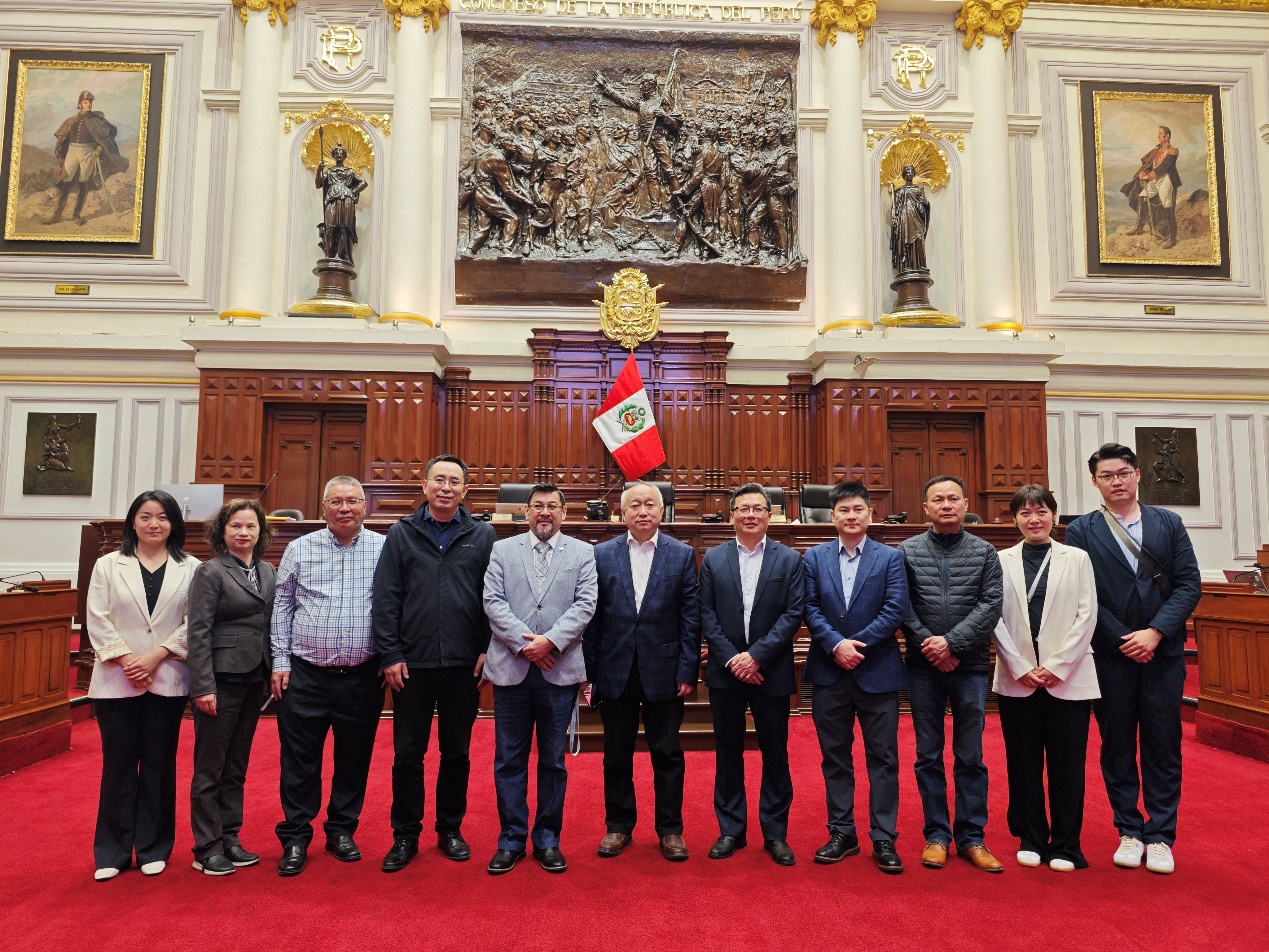 11月7日,中國(guó)新聞社采訪團(tuán)一行在秘魯國(guó)會(huì)采訪秘魯國(guó)會(huì)議員兼秘中協(xié)會(huì)友好聯(lián)盟主席路易斯·科爾德羅·楊·戴(左五)。