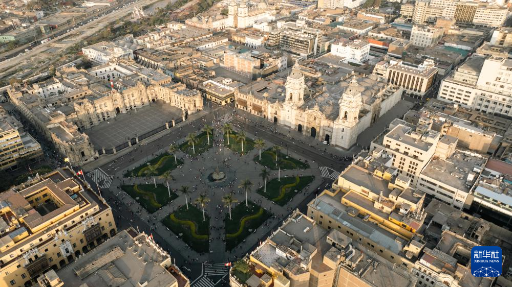 這是10月13日拍攝的秘魯首都利馬老城的阿馬斯廣場(chǎng)(無(wú)人機(jī)照片)。