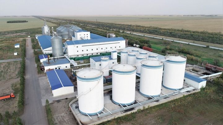這是2022年9月2日在哈薩克斯坦北哈薩克斯坦州拍攝的愛菊農產品物流加工園區(qū)(無人機照片)。新華社發(fā)(奧斯帕諾夫 攝)