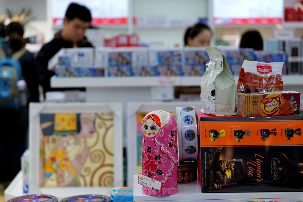 11月17日,旅客在湖北漢口車站中歐班列進口商品保稅店選購商品。新華社記者 邢廣利 攝