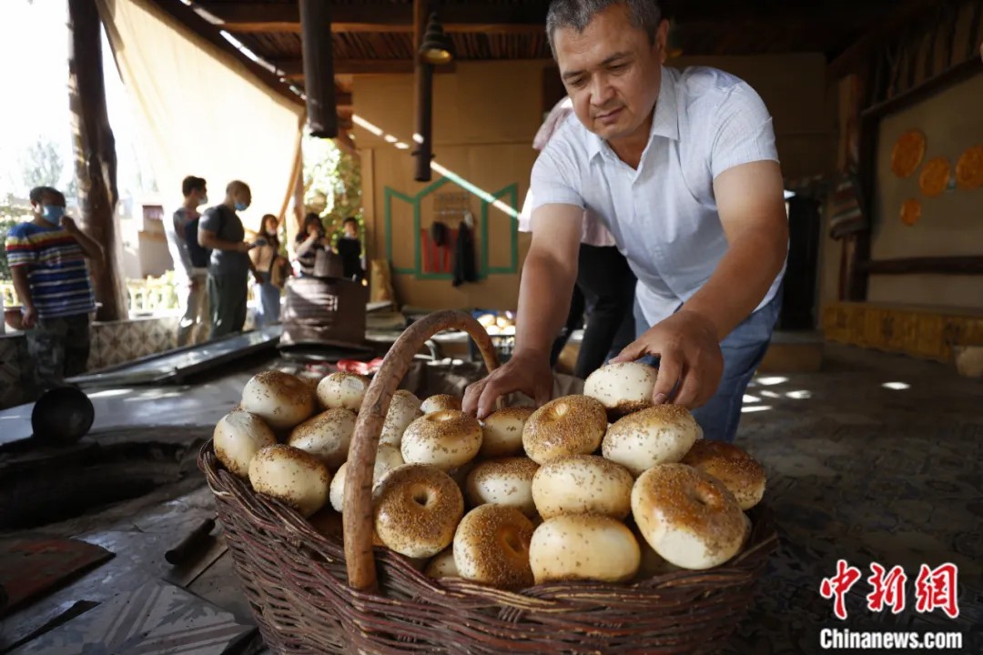 2021年9月25日,新疆維吾爾自治區(qū)克孜勒蘇柯爾克孜自治州阿圖什市阿孜汗村馕合作社。近年來,新疆大力發(fā)展馕產(chǎn)業(yè),并逐漸成為富民增收的“名片產(chǎn)業(yè)”。中新社記者 富田 攝